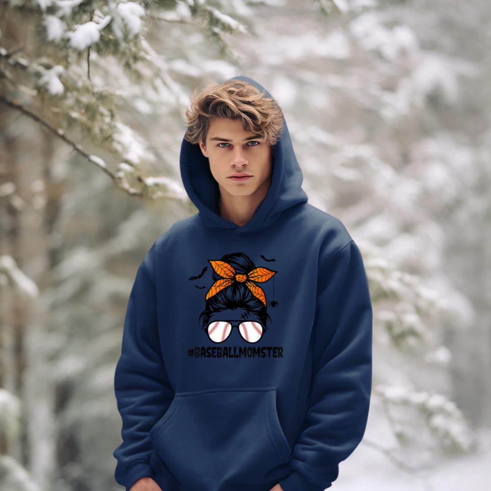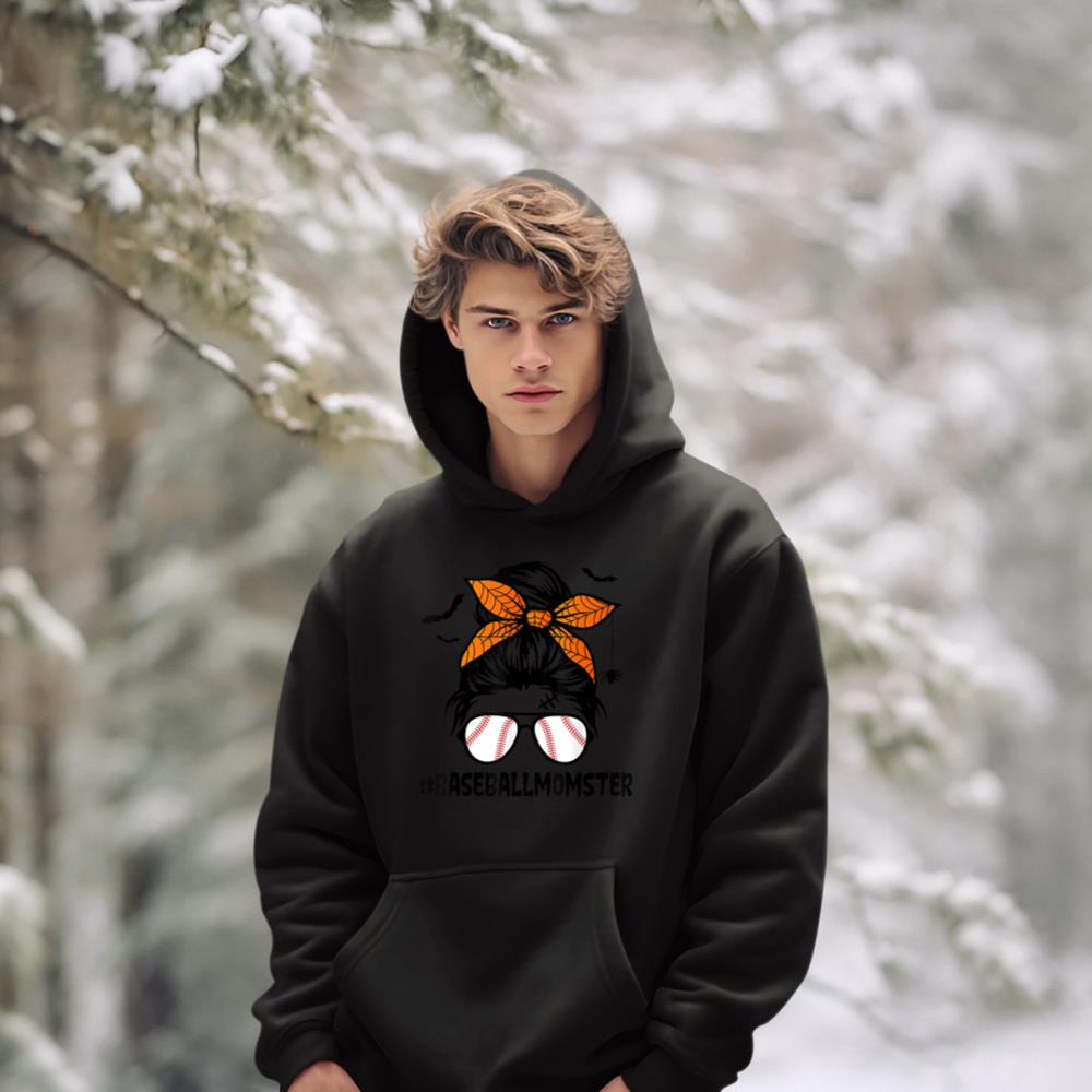 Baseball Momster Shirt for Women Halloween Mom Messy Bun Hoodie