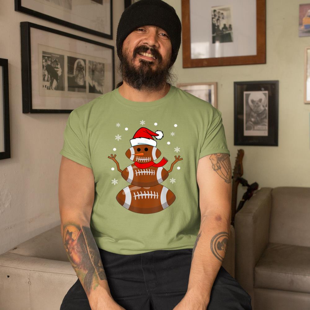 Christmas Football Snowman Kids Football Christmas Women Men T-Shirt