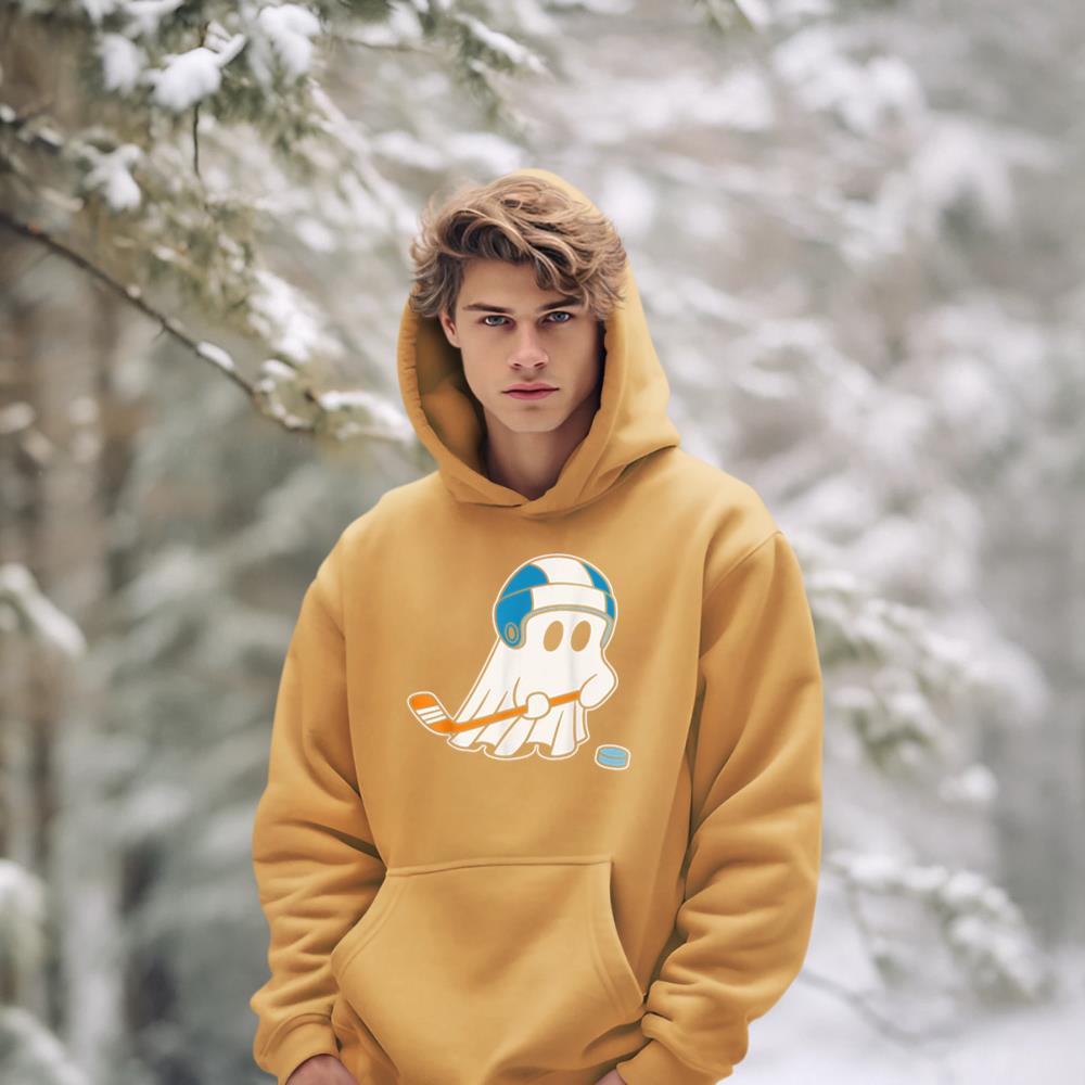 Funny Hockey Ghost Playing Hockey Lovers Halloween Hoodie