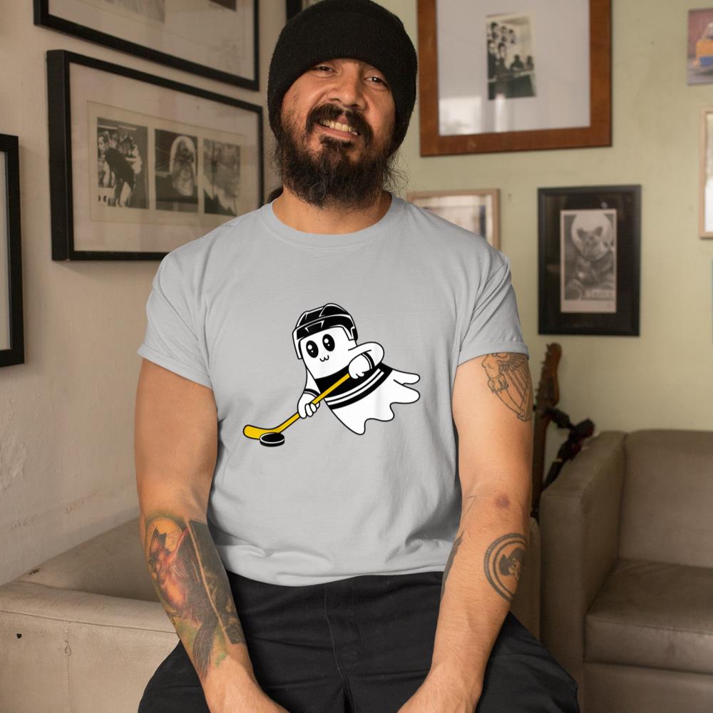 Ghost Playing Ice Hockey Halloween Costume Sports Men Boys T-Shirt