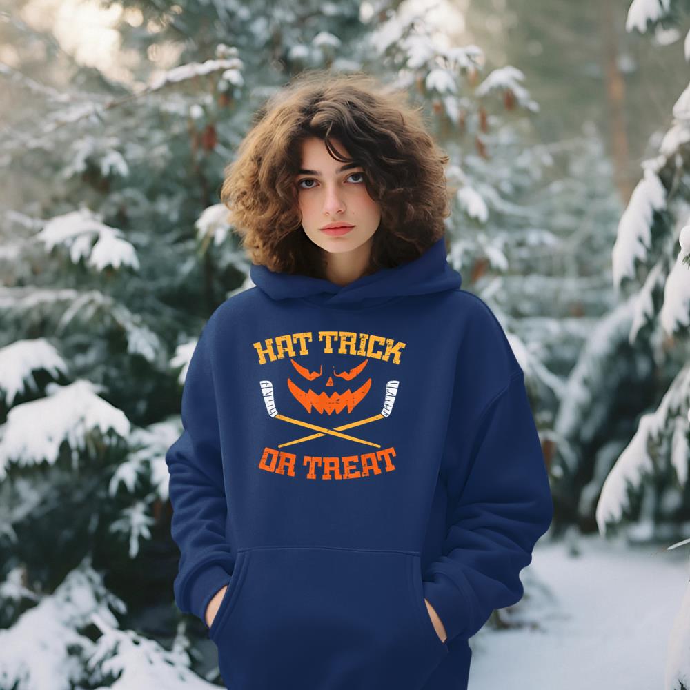 Hat Trick Or Treat Ice Hockey Halloween Boy Men Player Coach Hoodie