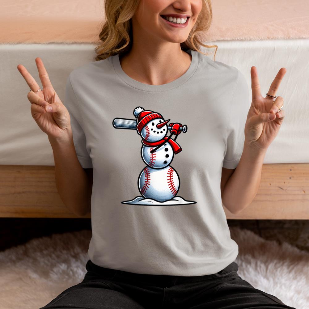 Snowman Baseball Player Xmas Women Kids Christmas Sports T-Shirt