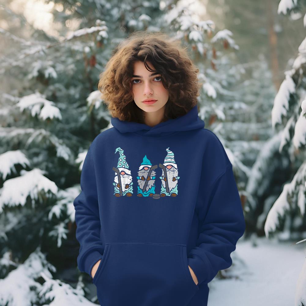 Three Nordic Gnomes Ice Hockey Tomte Nisse Player Goalie Hoodie