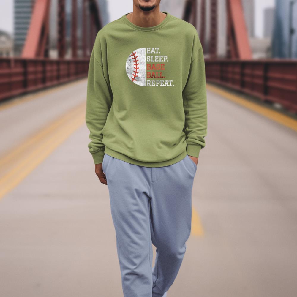 Vintage Baseball Player Eat Sleep Baseball Repeat Sweatshirt